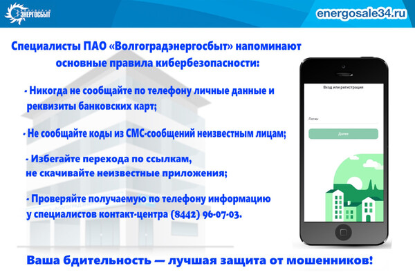 • Сотрудники «Волгоградэнергосбыта» никогда не просят сообщить информацию из СМС.